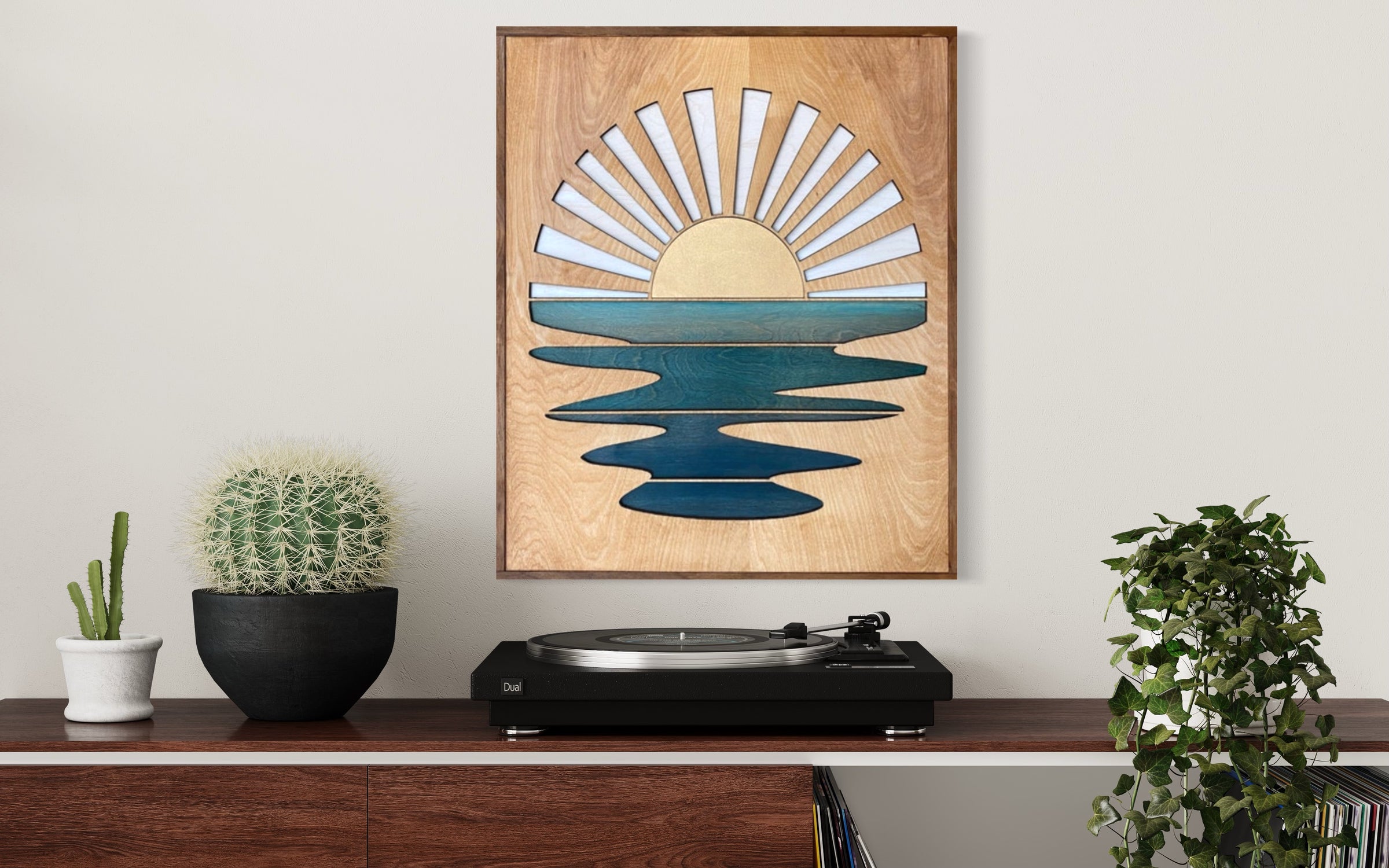 We have mastered using our own secret watercolor technique to emphasize and highlight the wood grain of each individual piece. The colors and grain of the wood vary from one piece to the next, making each artwork one-of-a-kind!